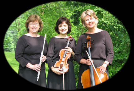 Since 1981 the Dolce Trio (flute, violin, cello) has been providing elegant chamber music in central Indiana for weddings, receptions, banquets, conventions, parties, social hours and corporate events. The musicians are comfortable and versatile in many settings, and their varied repertoire is a perfect companion to any unique event. The experience and professionalism of the Dolce Trio makes them easy to work with, providing a classic touch of ambience to your next special occasion. |